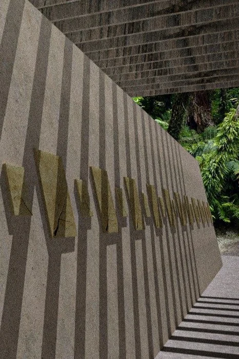 Concrete leaf impressions line the wall to a proposed new threshold for the Auckland Domain Fernery. Cast from fallen London plane leaves, the tiles echo the Domain’s monuments to memory and quietly honour the site’s botanical layers. This tactile intervention preserves the ephemeral and invites visitors to reflect on memory, landscape, and what endures.